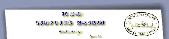 Maskinen är en 2 cylindrig Compoundångmaskin på 15 nominella hästkrafter (65 ihk) med Stephensons slidrörelse. Smörjsystem är en smörjapparat av Otto Montgomerys patent med droppsmörjning i 16 rör. Manöverplatsen ligger på babords sida. Alla reglage är väl samlade. Ångpådraget med direktånga i samma reglage och strålkondensorns vattenreglage manövreras med vänster hand, medan omkastar reglaget som går mellan lågtryckcylinderns vevstake och slidrörelse manövreras med höger hand.